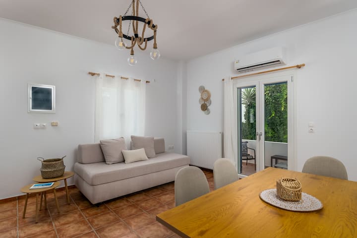 - Renta de alojamientos vacacionales con área de asientos al aire libre en Pyrgos Kallistis