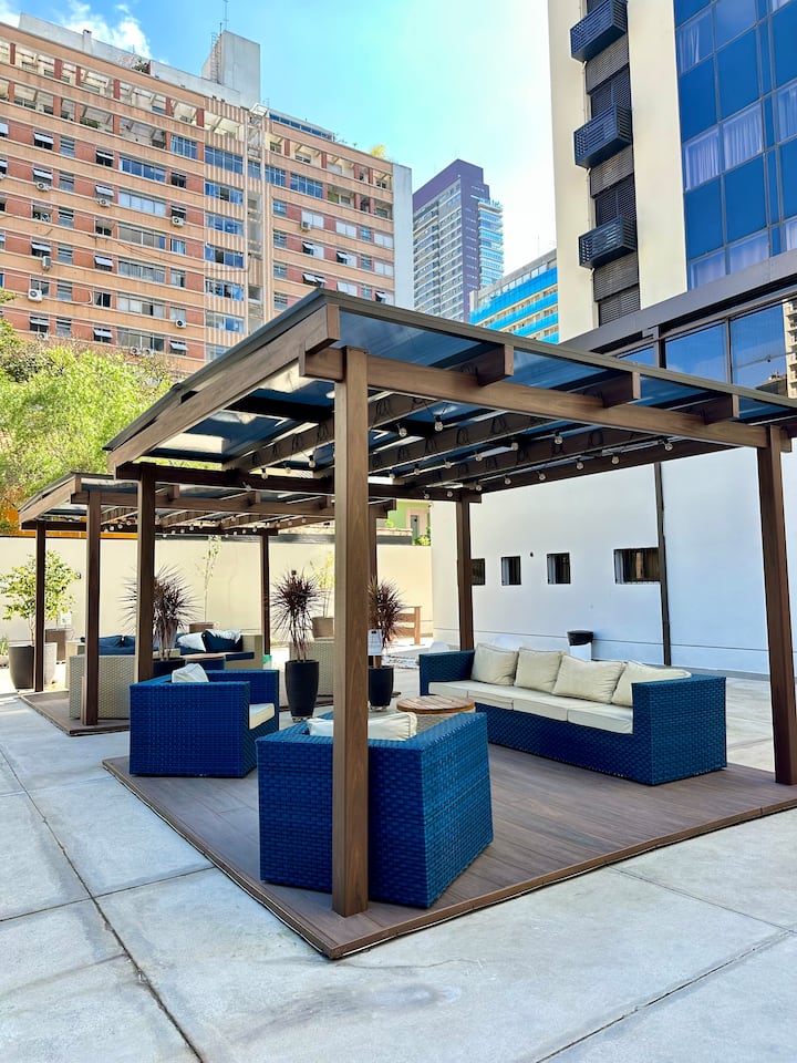 📍 A solo unos pasos de Faria Lima, Av. ¡Juscelino y los mejores cafés, mercados y restaurantes de la región! ☕