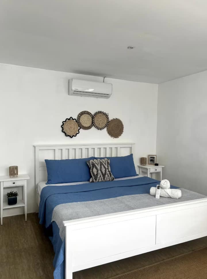 Tendrás acceso exclusivo a Villa uno durante tu estadía. Esto incluye el interior completo de la casa y el uso privado de la piscina, la sala de estar y la terraza. No se comparte nada. Disfruta de la experiencia completa de la villa con acceso a todos los servicios, incluidos electrodomésticos de cocina, un televisor de alta definición y el lujo de nuevas unidades de aire acondicionado en ambas habitaciones.