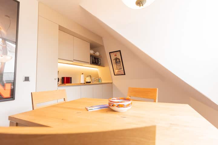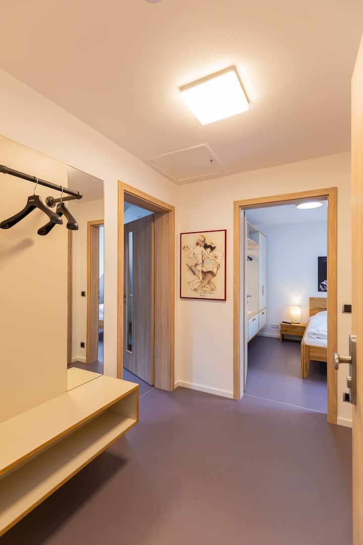 Su apartamento está situado exactamente en el centro del conjunto urbano medieval mejor conservado más grande de Alemania, que cuenta con una extraordinaria variedad de maravillosos monumentos.La ciudad en constante prosperidad rodea por todas partes con una animada urbanidad, ofrece elegantes y pintorescos oasis de tranquilidad y paz en callejones románticos aparentemente interminables entre brazos de río y canales. La rica y experimental oferta gastronómica, junto con un mercado animado, son señas de identidad inconfundibles; la amabilidad y la serenidad de Erfurt son proverbiales.EspañolYa sea la ciudad y Petersberg coronando la ciudadela con su imponente muralla de un kilómetro de largo, el imponente dúo de iglesias católicas Dom y Severi, junto con Gloriosa como la campana de freischwing más grande y hermosa del mundo, los Lutherstübchen en el venerable monasterio agustino, las casas representativas junto a Roland y el ayuntamiento neogótico en el mercado de pescado, la Sinagoga Vieja con Mikwe, los cigüeñales teñidos de negro del puente del mismo nombre, mundialmente famoso, o el Alma Mater más antiguo de Alemania como parte indispensable de la Crónica de Piedra de Michaelisstraße, todos los lugares esenciales son rápidamente accesibles a pie, en tranvía y autobús a solo unos pasos.La tranquilidad celestial que envuelve todo por la noche en la ubicación central descrita solo se ve interrumpida por las campanas de las iglesias parroquiales centenarias de Erfurt.