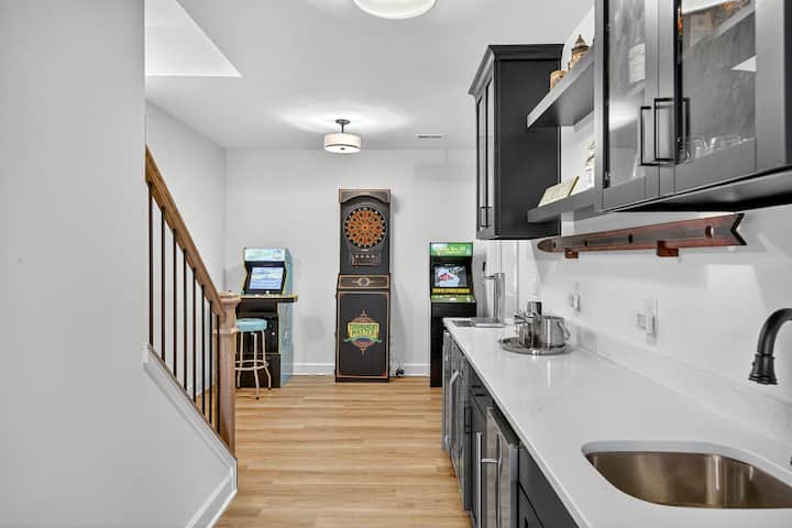 + Juegos de arcade que incluyen The Simpsons, Golden Tee y un tablero de dardos Tournament Master