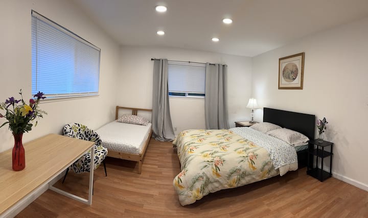 Una habitación solo para ti en un alojamiento, con acceso a áreas compartidas.