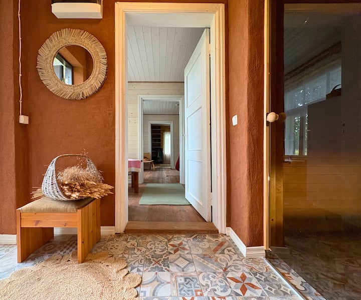 Escapada relajante en la naturaleza: campos serenos, sauna y río