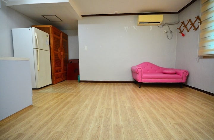 Prohibimos cocinar cerdo, pescado y cheonggukjang en la habitación para tener en cuenta a otros huéspedes debido al fuego y el olor, así que utiliza el lugar designado al aire libre y el área de barbacoa.