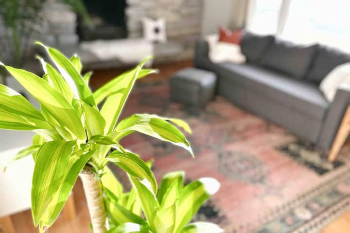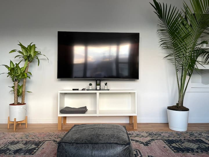 El dormitorio principal ofrece una hermosa cama tamaño queen de la marca Casper con sábanas, sábanas frescas y almohadas hipoalergénicas. Esta habitación está cuidadosamente decorada con un hermoso vestidor negro, perchas y lámparas.