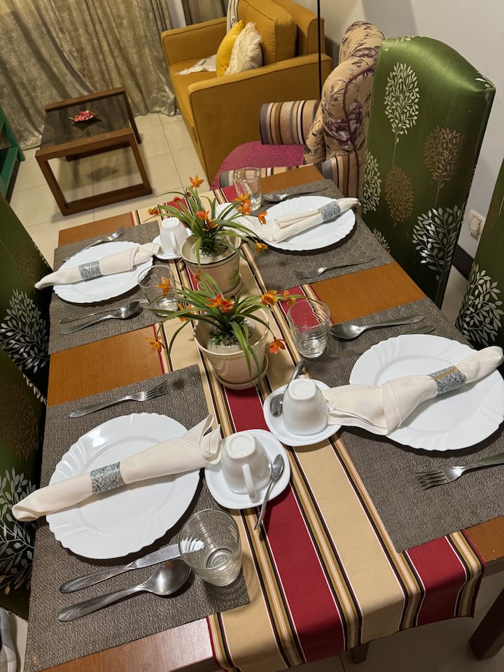 🍳 Cocina y comedor: equipados con refrigerador, estufa eléctrica, microondas, hervidor, utensilios de cocina básicos y utensilios de comedor.