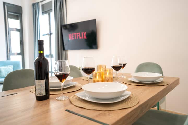 🏡 El apartamento completo es privado para ti, sin zonas compartidas. Cada espacio está diseñado para que lo disfrutes a tu manera: preparar un desayuno en la barra de la cocina mientras entra la luz, descansar en el salón insonorizado viendo tu serie favorita en la Smart TV, o terminar el día con una ducha relajante en el baño de estilo boutique. Los dormitorios, con ventanales de triple vidrio, invitan al descanso con ropa de cama suave y un ambiente sereno. Un lugar donde todo está preparado para ti: privacidad, confort y la tranquilidad de saber que cada rincón te pertenece.