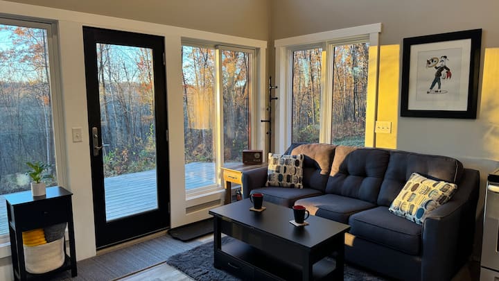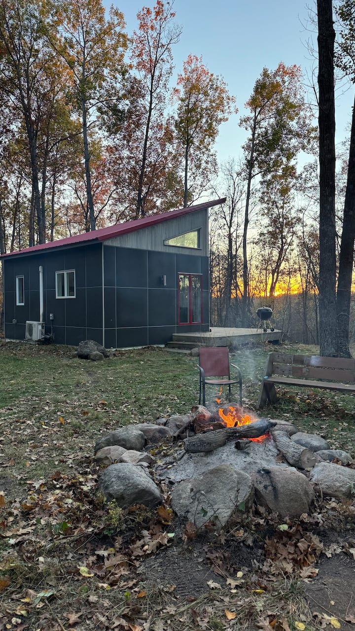 El Red Roof Loft en BlackBerry Acres es una cabaña moderna en 5 acres boscosos privados a lo largo del río Snake, a solo 1,5 horas de las ciudades gemelas. Con su llamativo techo rojo, su elegante loft y sus grandes ventanales que llenan el espacio de luz natural y vistas a las copas de los árboles, es la combinación perfecta de estilo y naturaleza. Disfruta de las puestas de sol desde la terraza, reúnete en los fogones superiores o inferiores, juega juegos de patio o rema en el río. Ideal para familias, parejas o un fin de semana de chicas cerca de cervecerías, senderos y el encanto de una ciudad pequeña.