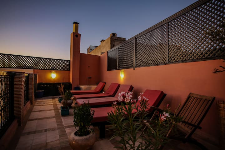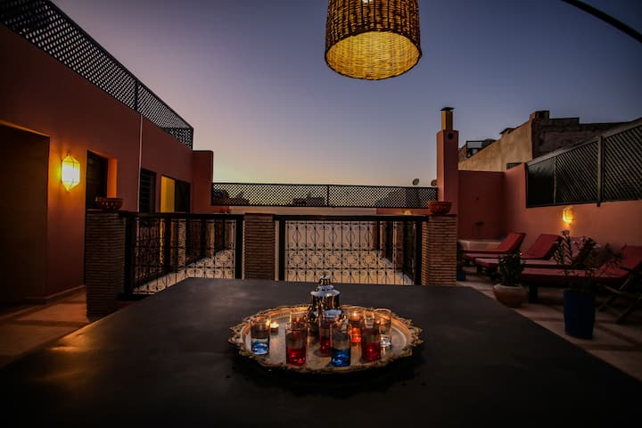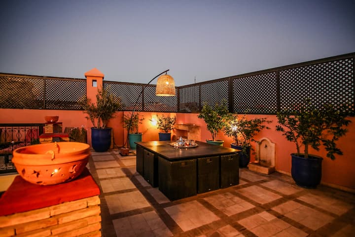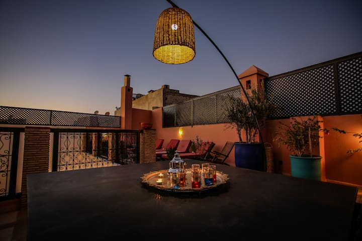 ¡Bienvenido a casa! Disfrute de un Riad elegante y céntrico en el corazón de la medina. Ideal para una experiencia inmersiva en Marrakech, cerca de todos los lugares turísticos y las buenas direcciones de la ciudad. Estarás en un lugar tranquilo y relajante que respeta un estilo marroquí tradicional y refinado y todas las comodidades modernas.