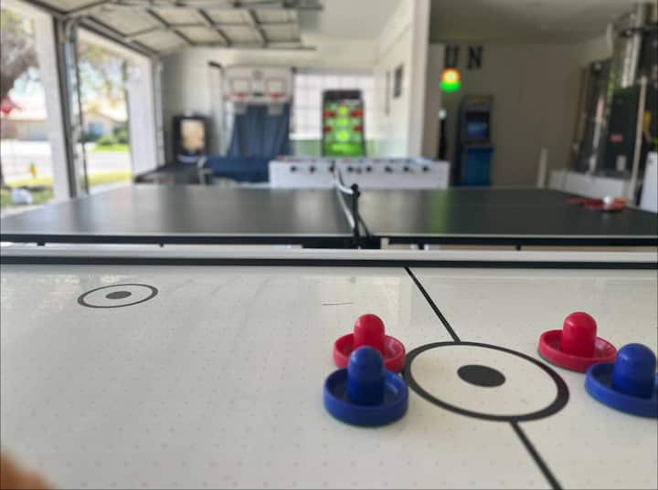 Bienvenido a nuestra elegante casa de 3 dormitorios y 2 baños de 1600 pies cuadrados con un gran espacio al aire libre, 2 salas de estar, sala de juegos, gran cocina y piscina y spa . Este alojamiento es perfecto para familias y/o celebraciones de despedida de soltera. Tenemos una cama de día importada de Italia que es perfecta para la publicación.