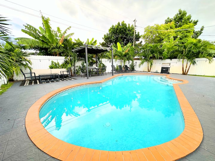 Espacioso refugio de 4 dormitorios con piscina cerca de Hollywood Beach