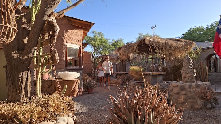 Jama Hostel es un acogedor hostal diseñado para viajeros que buscan un lugar relajante y amigable. Contamos con habitaciones privadas con baño privado o compartido, todas equipadas con cómodas camas, ropa de cama y un ambiente cálido que fomenta la interacción entre los huéspedes. Nuestra decoración refleja la esencia del desierto y la cultura local, creando un espacio único y acogedor.
