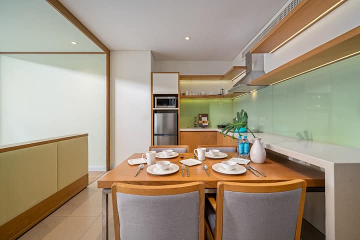 - Cocina totalmente equipada, ropa de cama lujosa y diseño moderno.