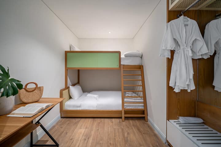 ✅ 1 cama tamaño king + 1 litera: ideal para parejas, familias o amigos que viajan juntos