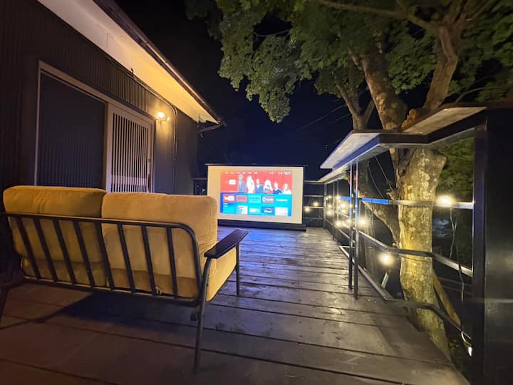 Puedes disfrutar del cine en casa y de los juegos con un proyector de pantalla grande de 120 pulgadas en LDK.(Por favor, trae tus propias cuentas y juegos)