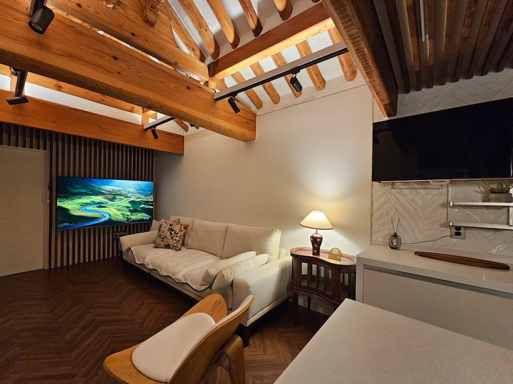 ¡Un espacio donde se encuentran el aliento de un cálido hanok y un sentido moderno!