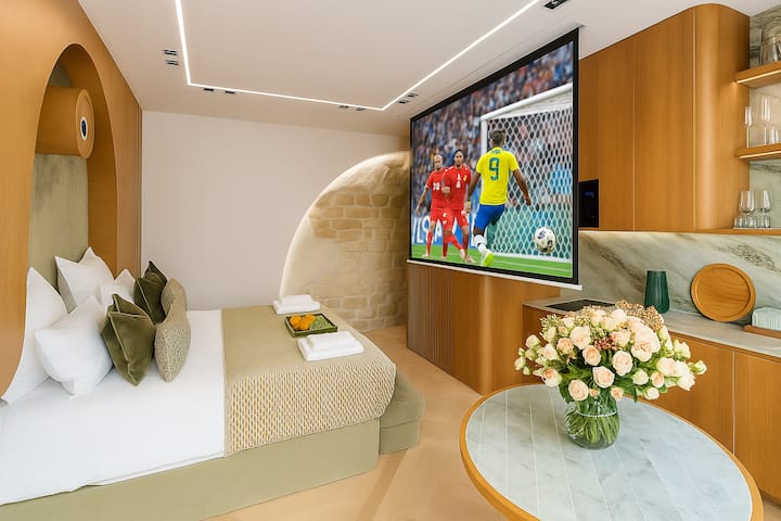 Para relajarte, disfruta del cine en casa integrado, perfecto para una acogedora noche de cine sin salir de la comodidad del departamento.