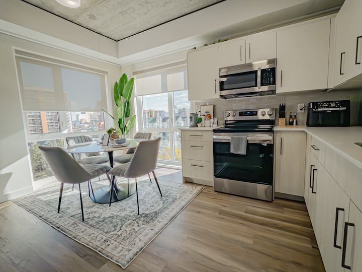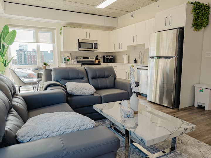 Centro de la ciudad | Suite moderna con gimnasio + estacionamiento