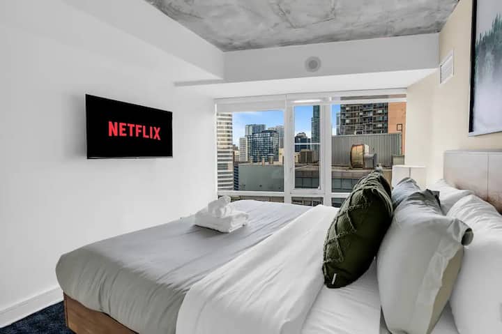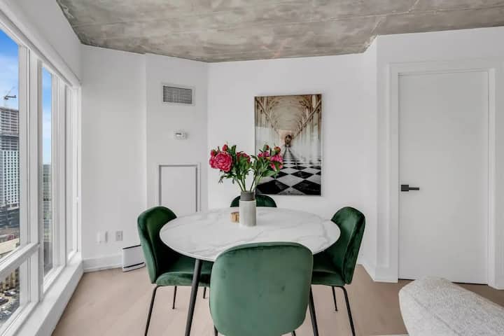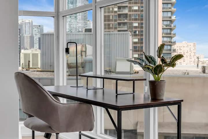 Ubicado justo enfrente del Hospital St. Michael. Este apartamento moderno y cómodo te dejará asombrado con su vista panorámica de la ciudad y sus nuevas renovaciones. No solo estás reservando alojamiento, sino una puerta de entrada a lo mejor de Toronto. Ya sea la cercana Torre CN, la Galería de Arte de Ontario o el Museo Real de Ontario, estás en el epicentro de los lugares de interés cultural de Toronto. Después de un día de exploración, vuelve a la tranquilidad del condominio, disfrutando de la mezcla perfecta de emoción urbana y acogedor descanso.
