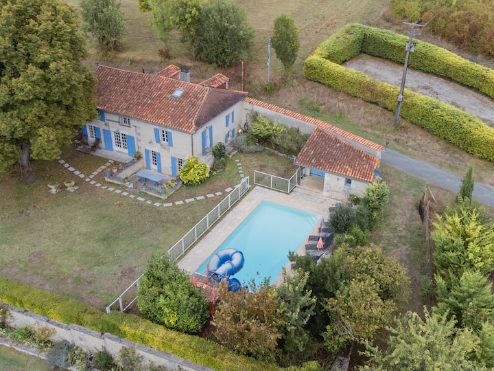 Amplia casa familiar con piscina privada y tobogán