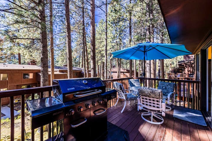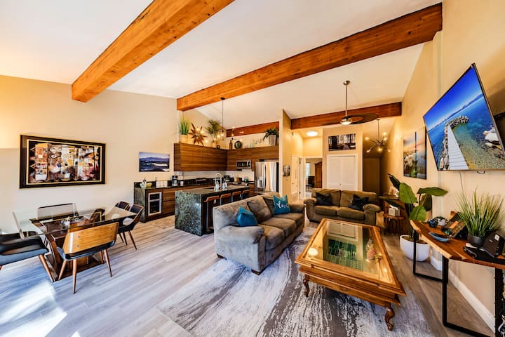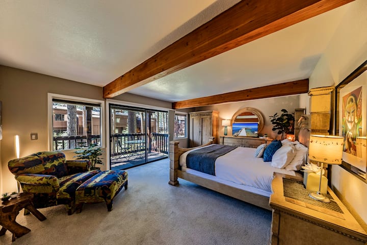 Los días en el lago Tahoe, las noches en Pinewild, comienzan con el café de la mañana en la terraza principal, pasea por la playa privada, luego regresa a casa para una sesión de sauna y películas junto a la chimenea. Este diseño renovado de tres suites es ideal para parejas que viajan juntas, familias o un grupo pequeño que busca comodidad, estilo y acceso premium a la playa de Marla Bay, todo a minutos de Heavenly, restaurantes y puertos deportivos.