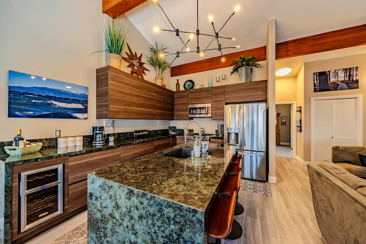 - Cocina contemporánea totalmente remodelada con impresionantes mostradores de labradorita con una gran isla y fregadero de granito.