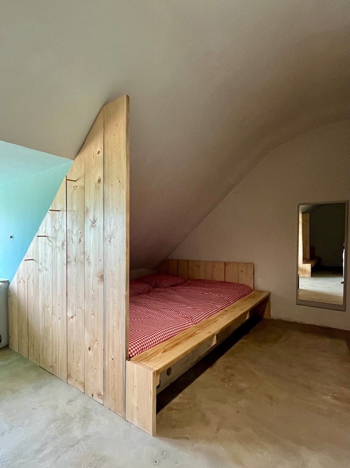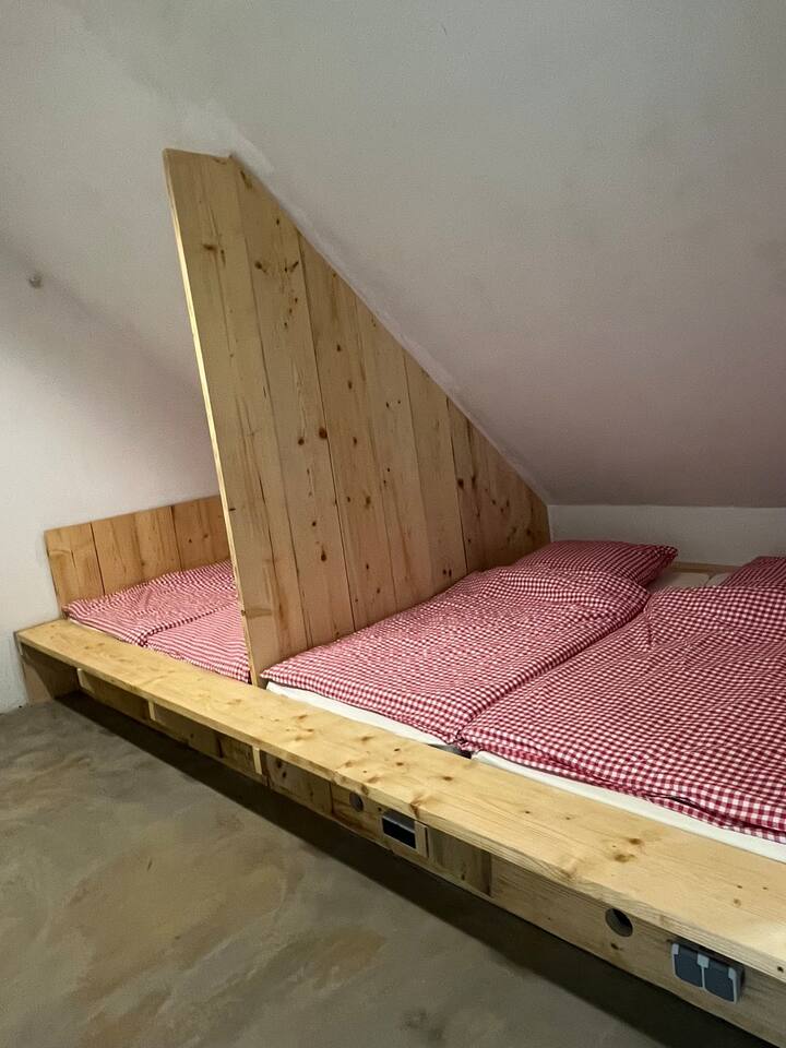 Cama acogedora en un oasis de madera bajo el techo