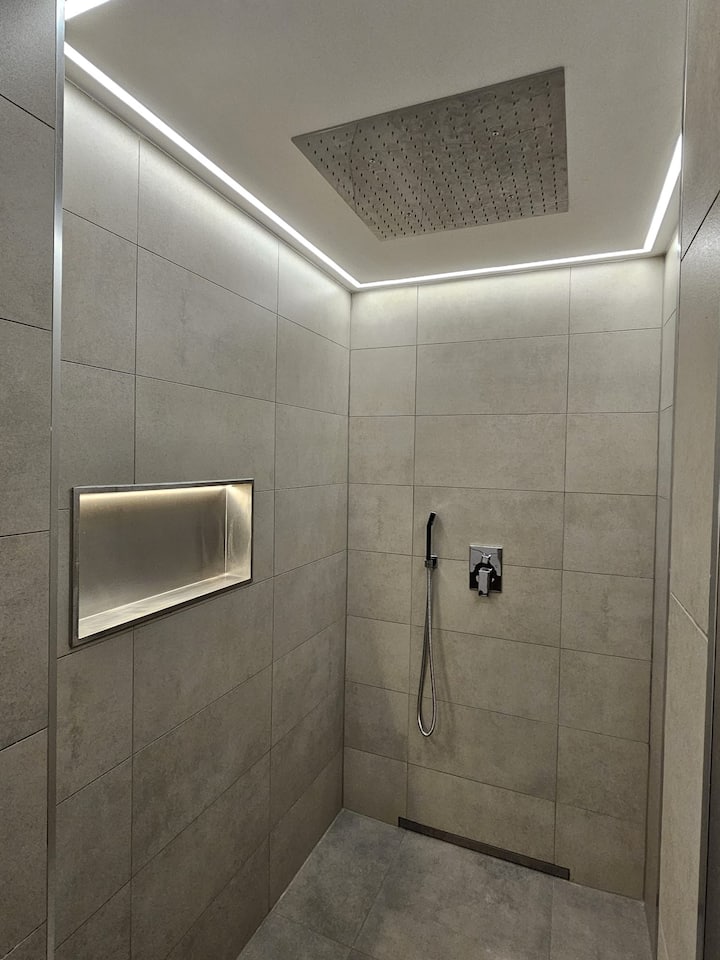 Sensación de bienestar: relájate bajo la moderna ducha de efecto lluvia.