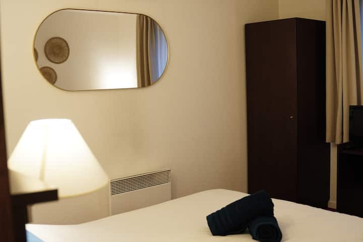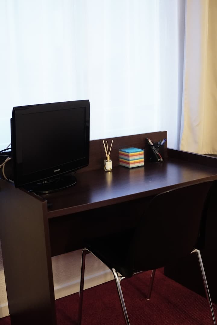 Una habitación con wifi apta para trabajar.