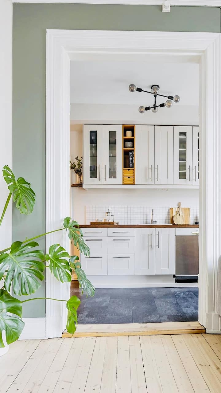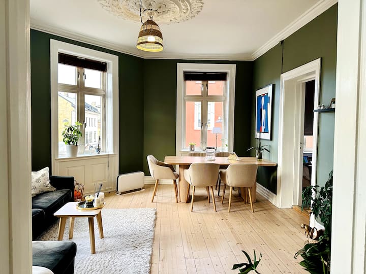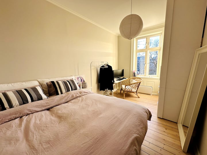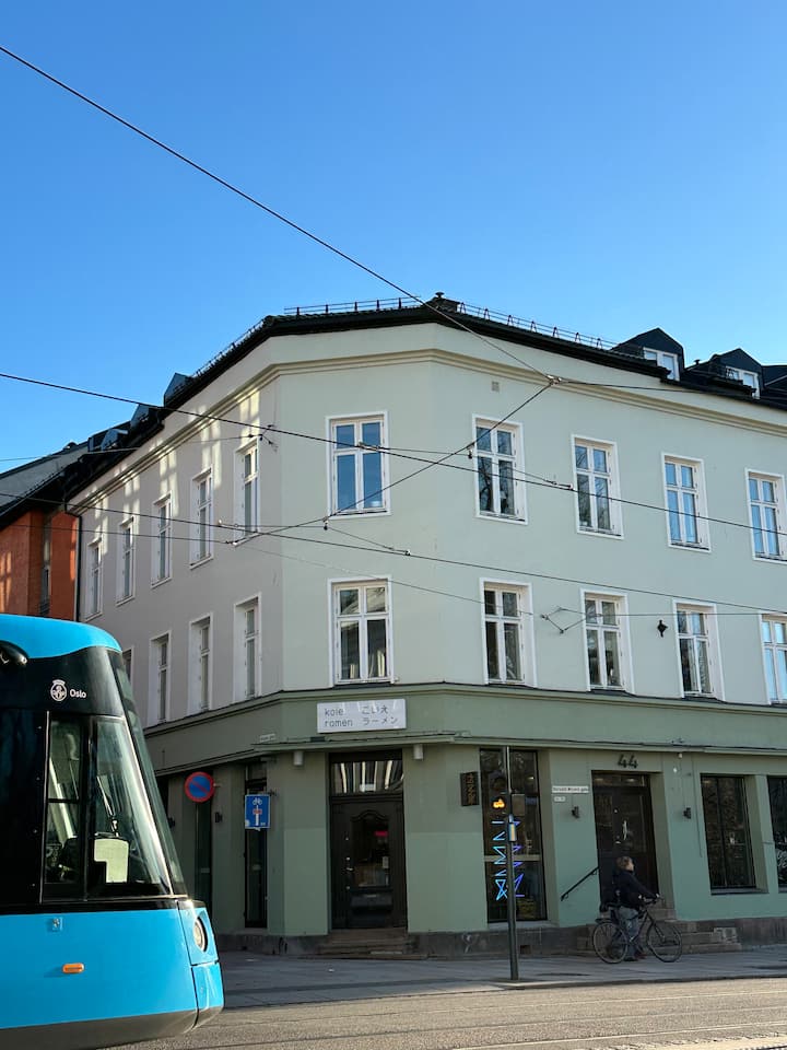 Hermoso departamento en esquina con pisos de madera y techos altos en el vibrante Olaf Ryes Plass.