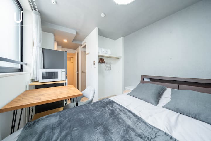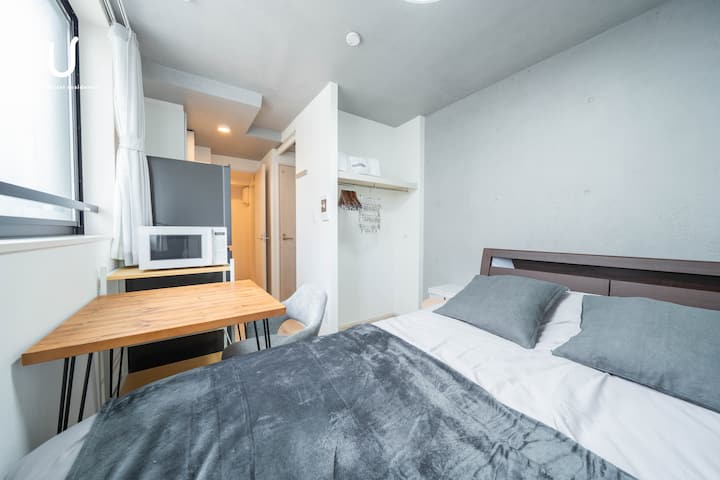 ¡Esta habitación en 1K es adecuada para 1 ~ 2 personas porque tiene 1 cama doble!