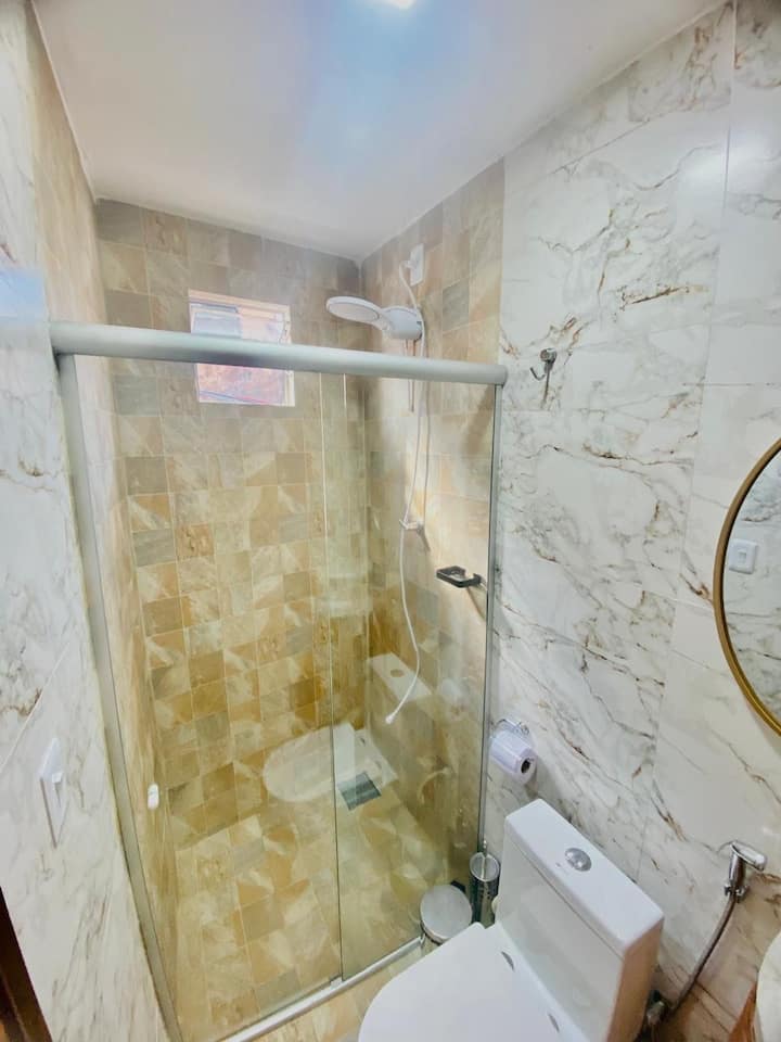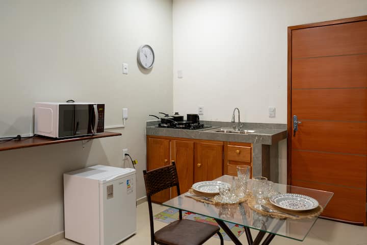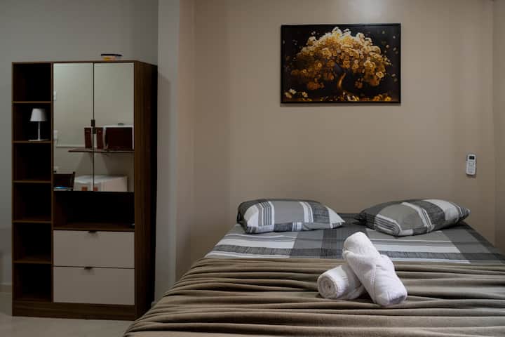 Flat2 con cama queen, aire, ducha eléctrica y cocina