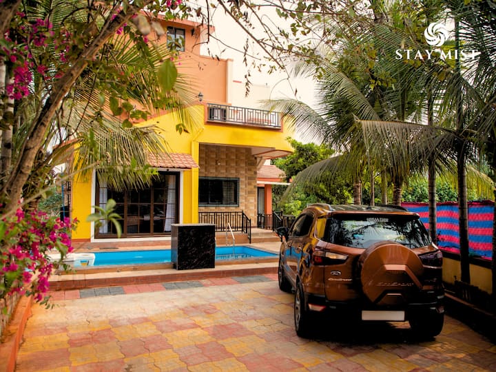 Disfruta de la escapada costera perfecta en Mystic Bay, una hermosa villa de 3 dormitorios con piscina privada en Alibaug. Ideal para familias, parejas y grupos, esta villa combina comodidad, elegancia y privacidad, lo que la convierte en una de las mejores villas de Alibaug para una escapada relajante.