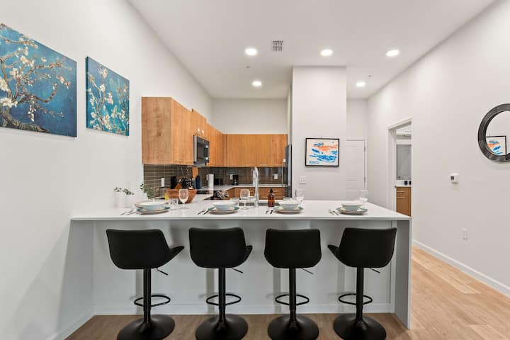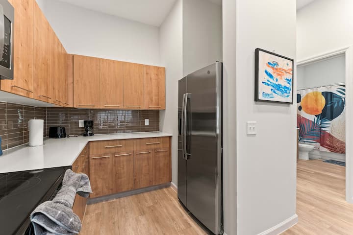 Elegante suite con cama tamaño king | Piscina • Gimnasio • Cerca de Epic U
