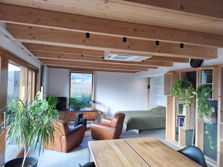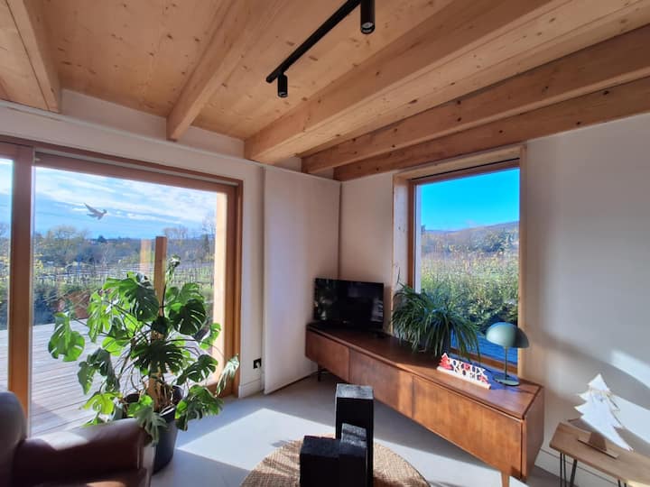 Lodge romántico en los viñedos – vista al castillo