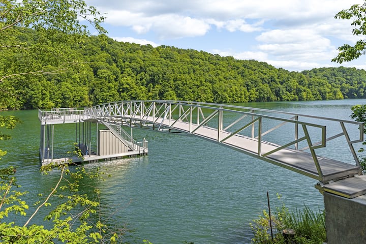 Sal a tu muelle privado en Norris Lake, con un tobogán acuático y estacionamiento para embarcaciones de hasta 28 pies. Ya sea en barco, nadando o relajándote junto al agua, esta casa frente al lago con muelle ofrece la mejor experiencia junto al lago.