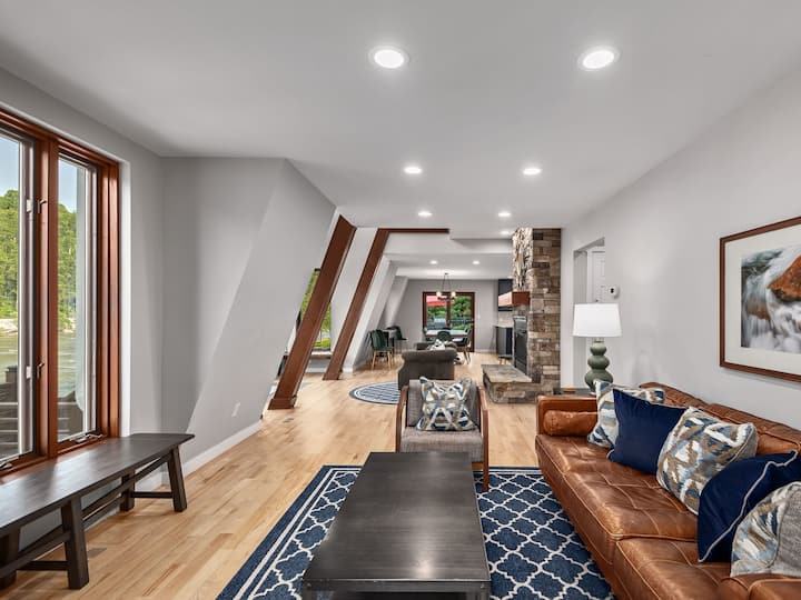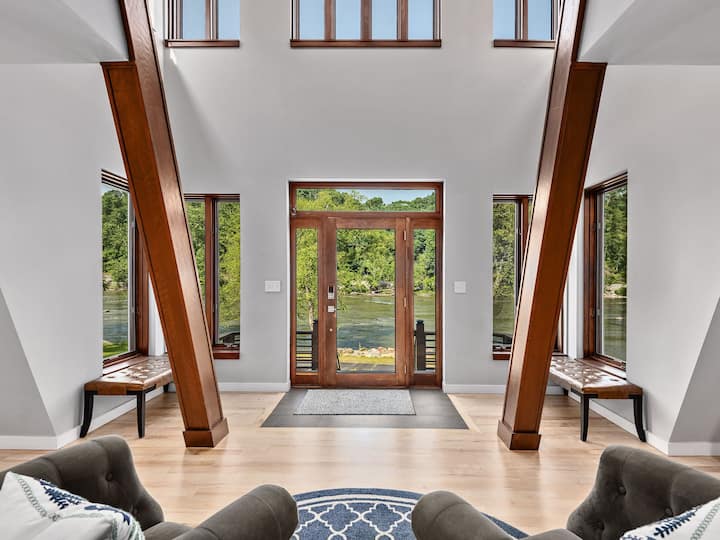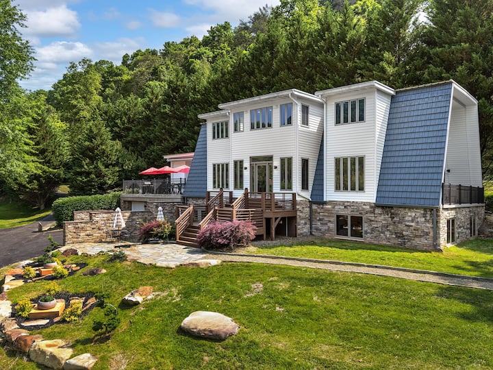 ¡Te damos la bienvenida al French Broad River Lodge! Una escapada moderna ubicada en el río French Broad, justo al norte de Asheville, Carolina del Norte, esta propiedad ofrece el equilibrio perfecto entre privacidad y accesibilidad. Explora las diversas atracciones de la zona a través de un fácil acceso a la autopista, sal a cenar o a hacer compras cerca, o simplemente relájate en el Lodge rodeado del pintoresco entorno y los relajantes sonidos del río.