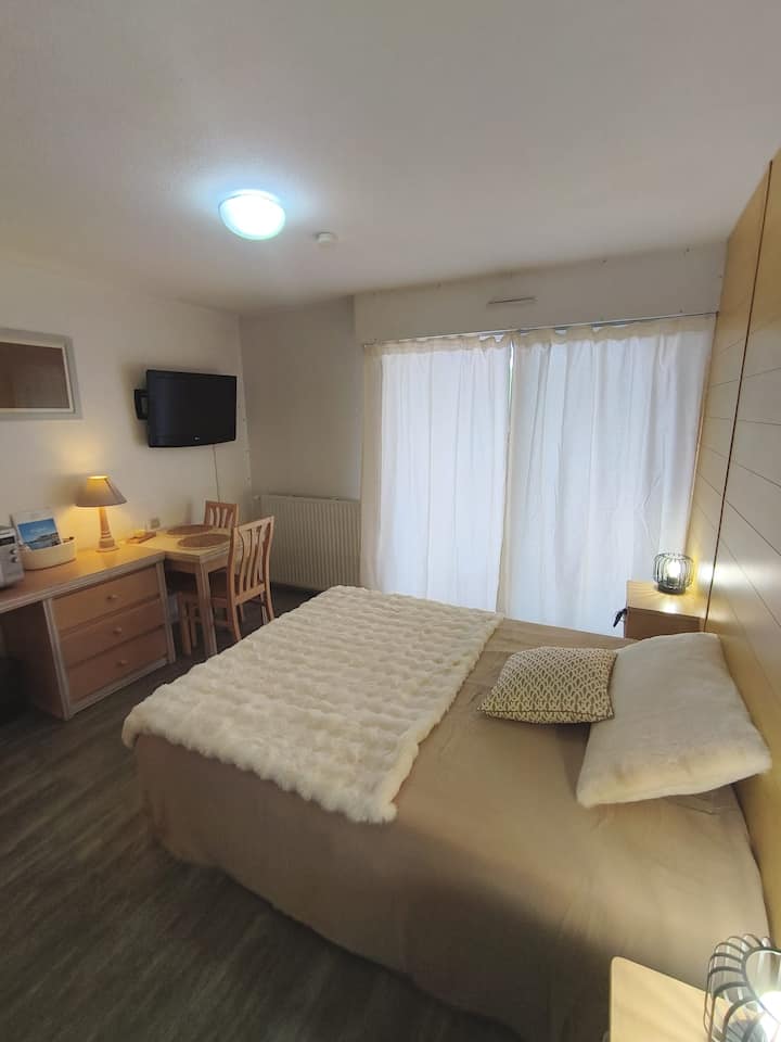 Estudio amueblado con comodidad con piscina y relajación