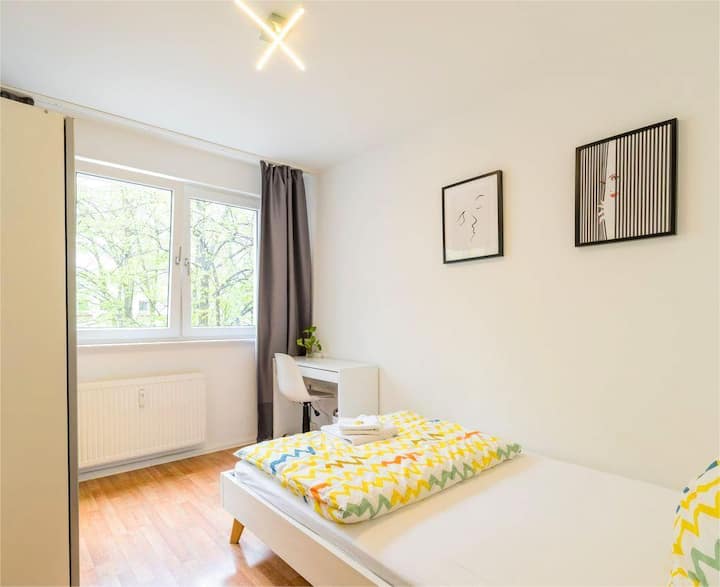 Tu habitación es luminosa, tranquila y limpia con internet rápido.