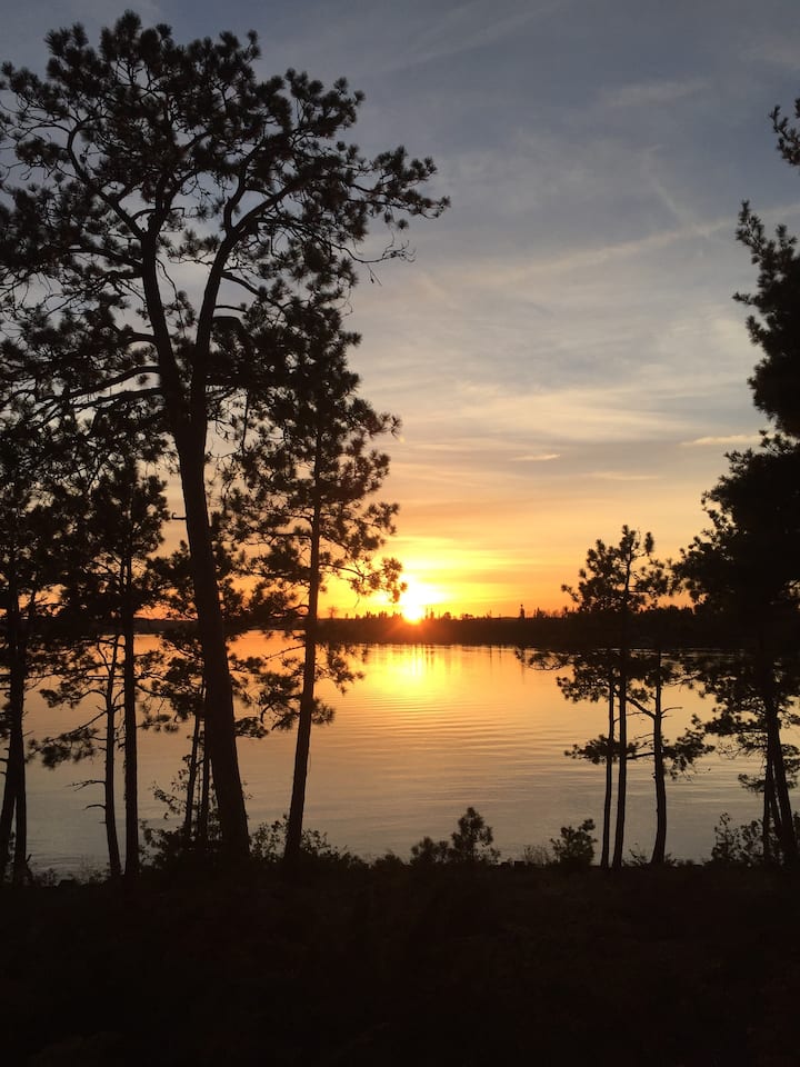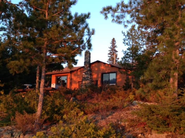 Cabaña de madera rústica de 3 dormitorios frente a un lago precioso.