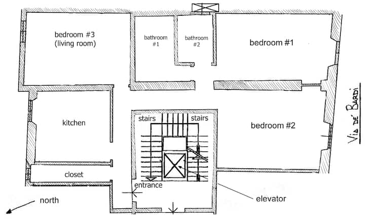Alquilamos otros tres apartamentos de este edificio en Via dei Bardi en Oltrarno, un distrito céntrico pero tranquilo en la orilla sur del río, y todas las atracciones principales están a poca distancia a pie.