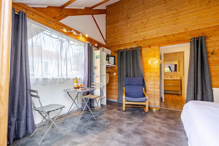 Gran habitación independiente con ducha y jardín