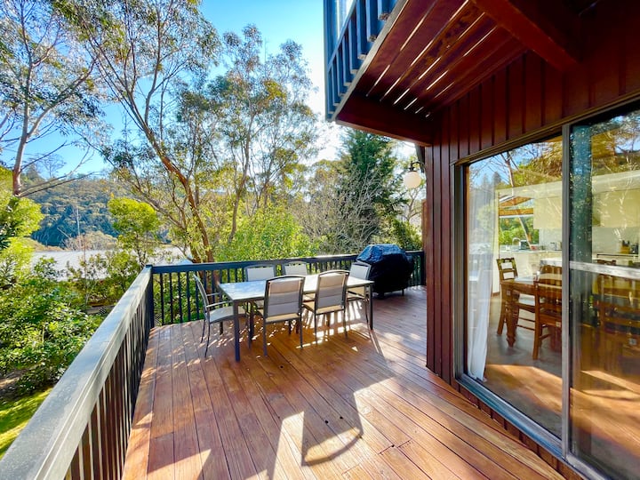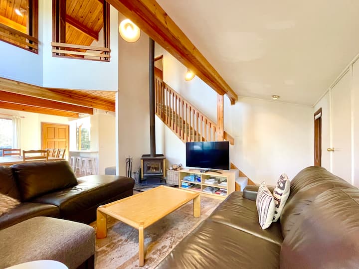 Sublime Cedar Lodge es un excepcional refugio de madera y vidrio con cinco dormitorios, dos baños modernos que incluyen una bañera de hidromasaje, una acogedora chimenea y una generosa terraza con barbacoa con vistas a los jardines nativos. La sala de estar principal cuenta con techos abovedados, sofás de cuero, dos televisores inteligentes, aire acondicionado de ciclo inverso y una chimenea de combustión, perfecta para noches de invierno. La planta baja es accesible para sillas de ruedas. Con una ubicación ideal en el punto medio del Grand Cliff Top Walk, con cafeterías y miradores cerca.
