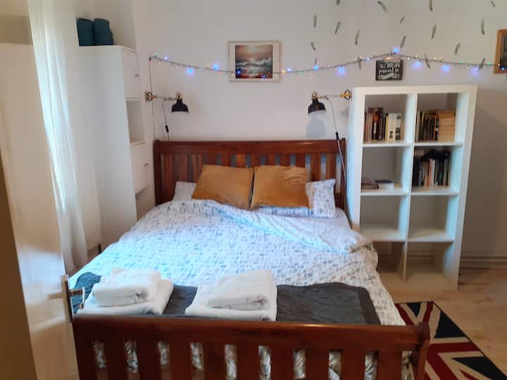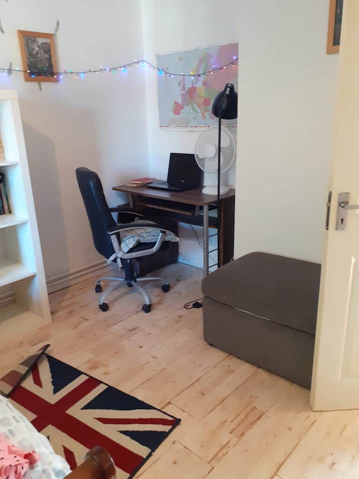 Una habitación solo para ti en un alojamiento, con acceso a áreas compartidas.
