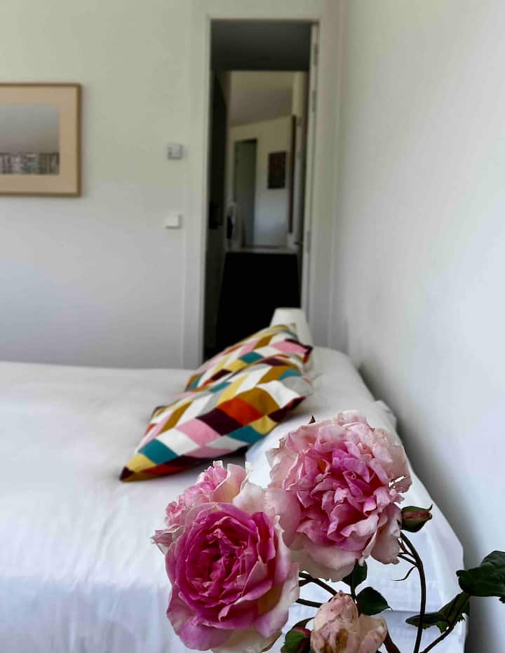 Junto con mi marido e hija, vivimos en Inglaterra durante 17 años. Somos de Bilbao pero hace años que Asturias nos conquistó. Este casa ha sido nuestro proyecto personal, la hemos pensado al detalle y construido con mucha ilusión.