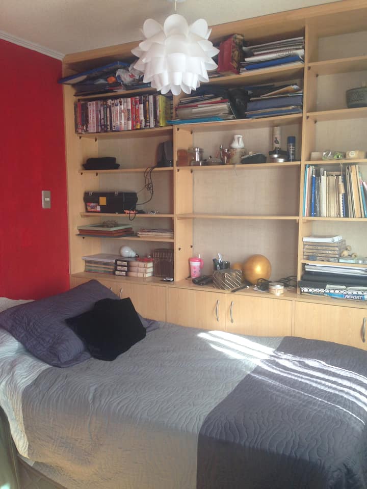Una habitación solo para ti en un alojamiento, con acceso a áreas compartidas.