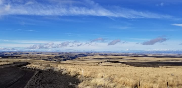 Randy y yo cultivamos trigo aquí en el condado de Gilliam. Mountain View fue construido para su familia agrícola cuando tenía 4 años. Nos sentimos muy agradecidos de poder recuperar esta propiedad, ya que significa mucho para la familia. A medida que creció la demanda de viviendas asequibles para estancias cortas para familias, agregamos Chestnut Manor, Condon Cabin y Up North. Esperamos que uno de estos se adapte a tus necesidades.