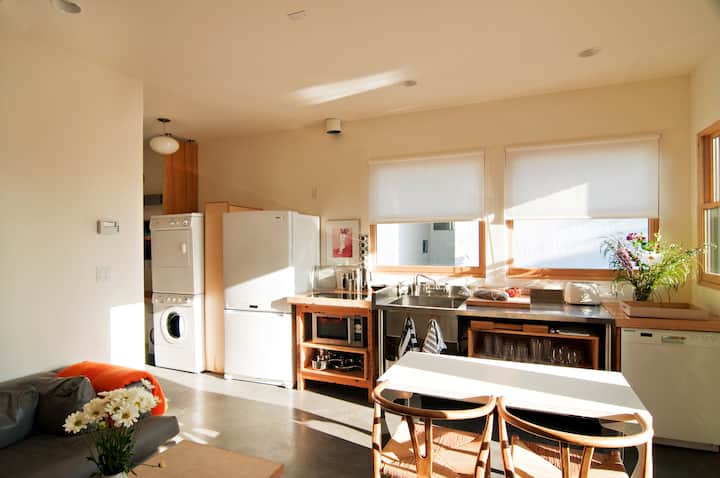 También me encanta esta ciudad y doy consejos a los visitantes para que disfruten de la experiencia más local. Victoria es rica en generosidad natural y artificial, hay excelentes restaurantes y cafeterías pequeños/locales que se encuentran en los barrios cercanos. Elegí la ubicación de esta casa para construir porque está en una calle tranquila y sin salida, mientras que está situada a 5 minutos a pie del centro de la ciudad o del corazón del pueblo de fernwood. Ubicado en el límite del centro de la ciudad y de la madera del helecho, este es un barrio urbano extremadamente transitable y vibrante.
