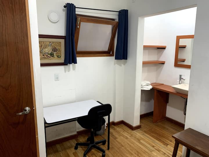 Una habitación solo para ti en un alojamiento, con acceso a áreas compartidas.
