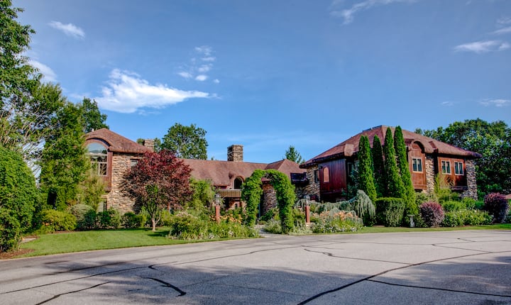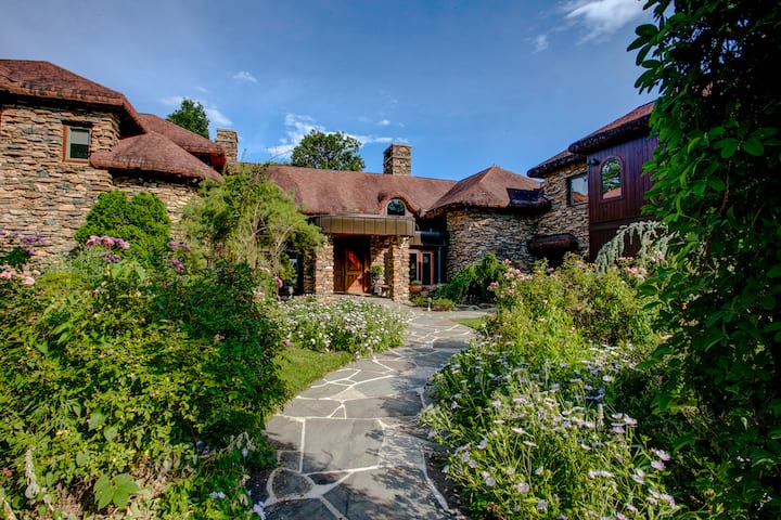 En esta propiedad única, también hay una cabaña rústica (sin plomería), un zoológico de mascotas que aloja burros y cabras, un estanque de pesca, senderos mágicos para caminar, putting greens, área de picnic cubierta y cancha de tenis/baloncesto. Este alojamiento está protegido de forma privada con un cuidador a tiempo completo y está a solo cinco minutos del centro de Hendersonville y a menos de treinta minutos del aeropuerto regional de Asheville.